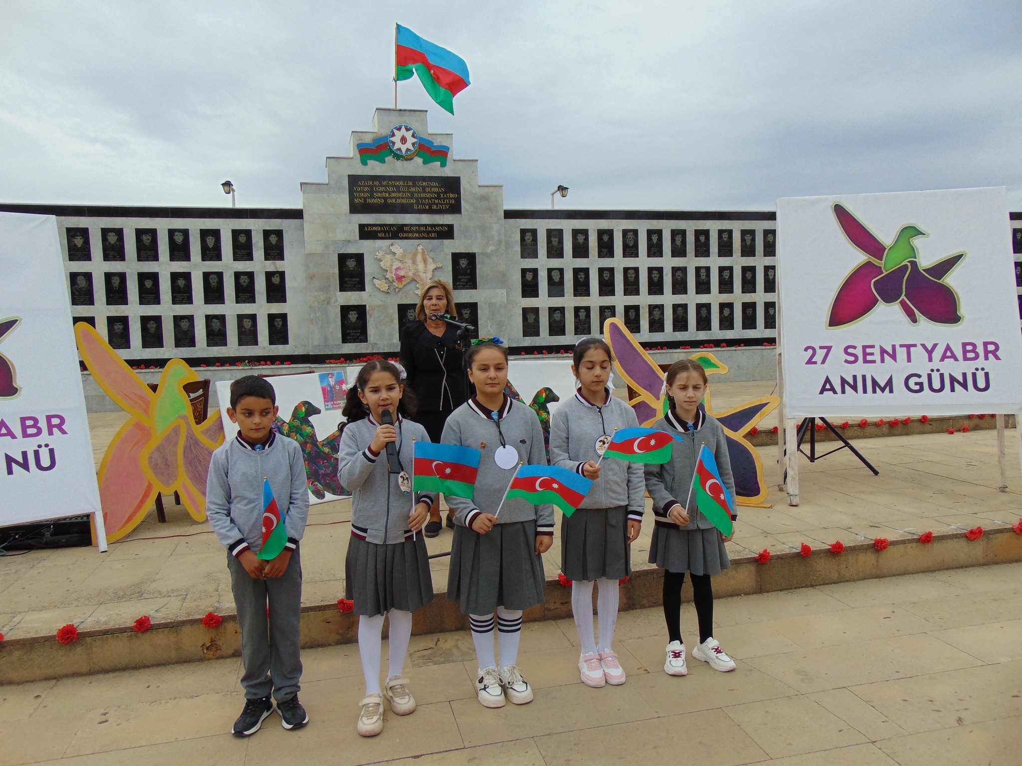 Azərbaycan Respublikasının Dövlət Himni səsləndirilib, Respublikamızın ərazi bütövlüyü, suverenliyi uğrunda canından keçmiş şəhidlərimizin ruhu bir dəqiqəlik sükutla yad edilib.